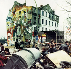 In der Hamburger Hafenstraße auf St. Pauli standen in den 1980er Jahren mehrere heruntergekommene alte Häuser, die abgerissen werden sollten. Sie wurden allerdings schnell von einer bunten Mischung Wohnungssuchender, Studierender und Aktivisten einer alternativen sich autonom bezeichnenden Szene besetzt. Es kam zu heftigen Konflikten mit krawallartigen Auseinandersetzungen mit der Polizei. Das Ganze geriet zu einem Symbol für den Widerstand gegen Wohnungsknappheit und Spekulantentum. Der Konflikt kostete den damaligen Bürgermeister Klaus von Dohnanyi fast den Job, bis es 1987 zu einem Kompromiss kam.
