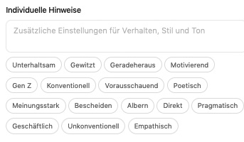 Neue Sprachstile: Über die Einstellungen in ihrem Account kann nun jede Person eine zu ihr passenden Sprachton wählen. Die Auswahl habe keinen Einfluss auf die Inhalte, sondern soll nur die Stimme bei Sprachwiedergabe betreffen, „lebensecht ... mit individuellem, unverwechselbaren Tonfall und Charakter“, wie es in der Erklärung heißt. Man kann einige Zeit damit verbringen, um das Gefälligste für sich herauszufinden. Die Untertitel bei den Einstellungsmöglichkeiten geben allerdings Rätsel auf: Was unterscheidet ausgereifte und präzise Antworten von direkten und motivierenden? Was ist die Differenz zwischen professionell und aufrichtig? Sind enthusiastische Wahrheiten noch informativ? Die Benutzerinnen und Benutzer sollen es wohl selber herausfinden.