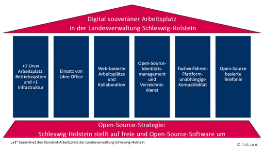Schleswig-Holsteins Landesregierung hat damit begonnen, zumindest die öffentliche Verwaltung auf eine von den US-Unternehmen unabhängige Plattform umzustellen (Schaubild zeigen).