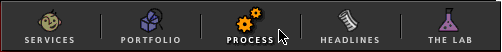 Im unteren Bild befindet sich die Maus auf dem Process-Menü. Die Aktivierung wird wieder aufgehoben, sobald die Maus das Feld verlassen hat. Das mouseout-Signal bewirkt das Nachladen des alten Bildes mit der nichtaktivierten Darstellung.